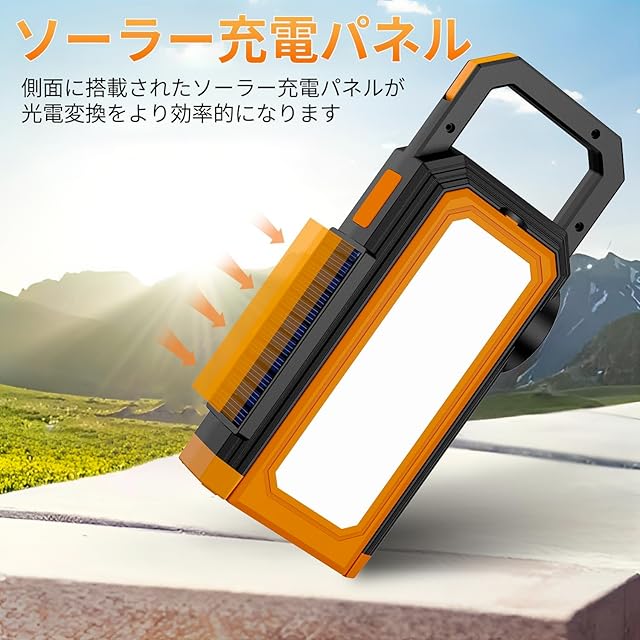 【防水性・耐用性抜群】ソーラー ランタンは防水機能を備え、いかなる角度からの水しぶきも耐えられ、小雨、雪などの天気でも影響なく使えます。キャンプ、夜釣りや災害時などの様々な場合で夜間照明として役立ちます。また、特殊のABS素材で耐衝撃性、耐熱性、耐磨耗性に優れ、悪天候に耐えられ ランタン です。ご注意:完全防水ではないので、水面下に投入しないでください。