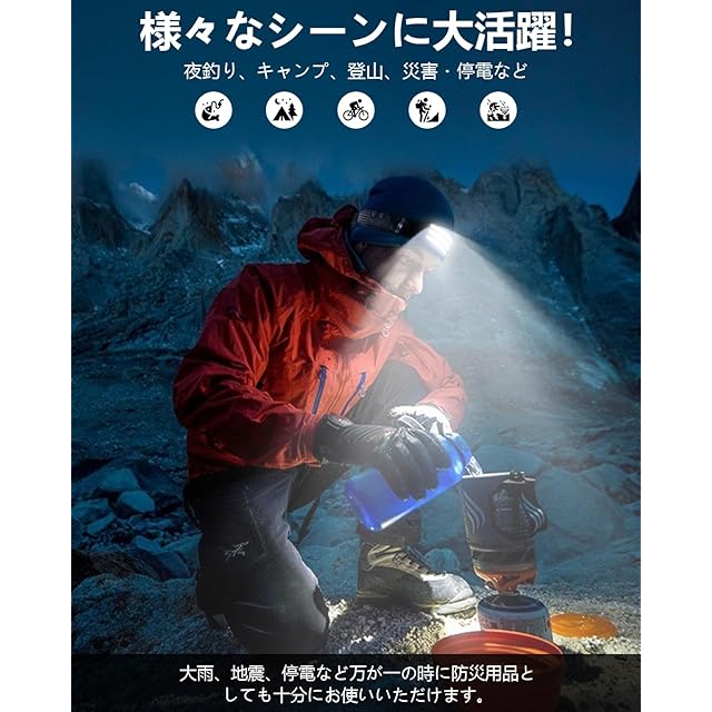 【防塵・防滴仕様でアウトドアや緊急時にも最適】IPX4相当の防滴・耐塵設計で、登山、夜釣り、キャンプ、散歩、災害時、停電などあらゆるシーンで活躍。アウトドア愛好者から防災準備まで、1台で多目的に対応します。