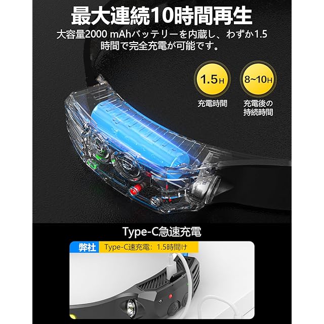 【2000mAh大容量バッテリー搭載&長時間点灯】高品質2000mAhリチウムバッテリーを内蔵し、業界トップクラスの持続力を実現。低輝度で最大10時間/高輝度でも約8時間の連続点灯が可能。さらに、たった1.5時間で急速充電完了するType-C充電式で、忙しい毎日でもすぐに使えます。 乾電池不要で、繰り返し使えるエコ設計。防災グッズとしても心強く、停電・災害時の備えとしても最適です。