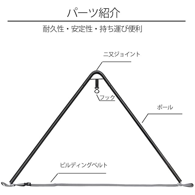 【安定性抜群】安定した三角構造でより良い安定性を提供し。固定ストラップの締まり具合を調整することによって、両側をよりコンパクトで安定します。