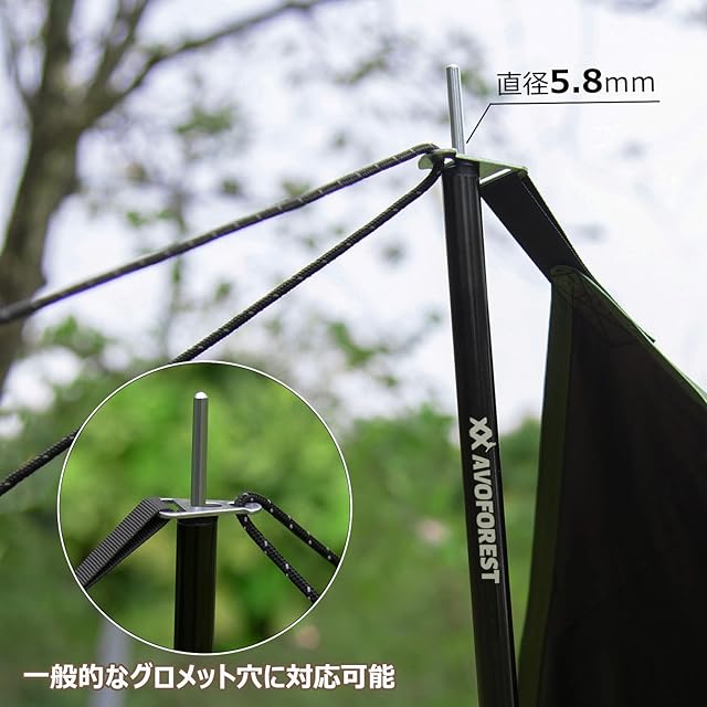 タープポール AVOFOREST スチール製 テントポール 直径16MM 総長189CM 2本セット 5本連結 コンパクト収納 持ち運び便利 収納バッグ付き テント タープ アウトドア キャンプ用品