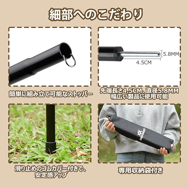 ✅【蓄光落雷防止キャップで安心】:暗闇でポール先端が優しく光る蓄光キャップ付き!子供の衝突防止に加え、雷対策機能でアウトドアの安全をダブルサポート。暗い中でもしっかり目立つので、ぶつかって怪我をする心配が減り、安心してお使いいただけます。