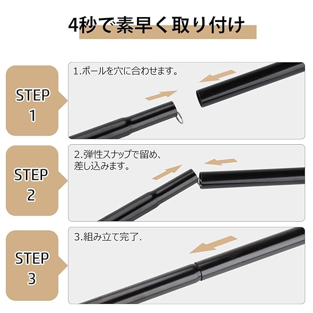 ✅【超簡単4秒セッティング】:面倒な組み立て不要!パチッと差し込むだけで189cmの高さをキープ。初心者でもプロ並みの設営が叶います。専用の収納袋がセットになっており、使用後の片付けや保管がとても簡単。いつでもスッキリと整理整頓できます。