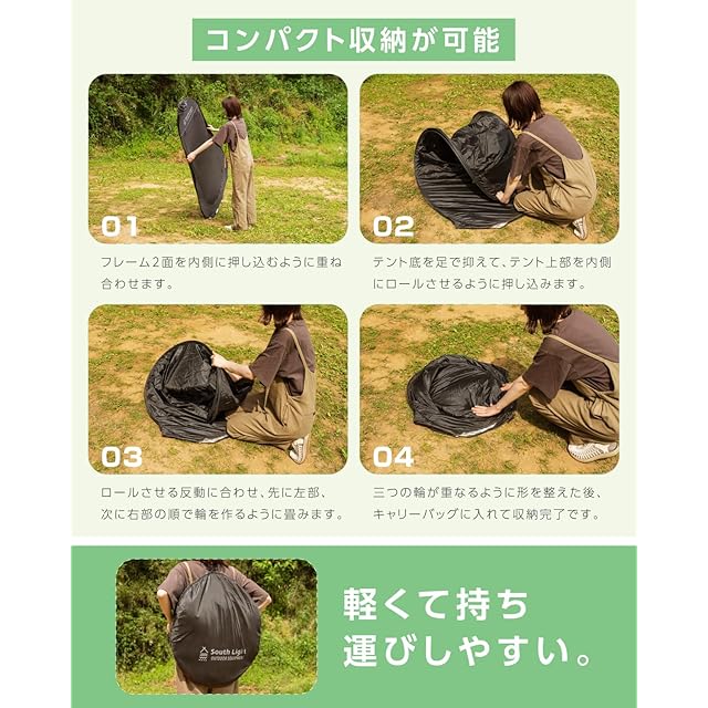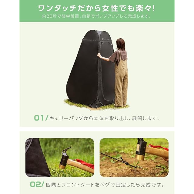 【ポップアップ式&使用簡単】この着替えテントは使用が非常に簡単で手軽です。ポップアップ式のデザインなので、開封後わずか20秒で帐篷を立てることができます。難しい組み立て作業は一切必要なく、誰でも簡単に利用できる便利な設計です。