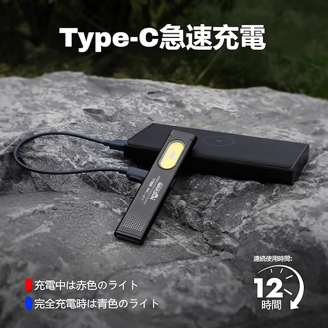 長持ち & USB-C 充電可能: 800mAh バッテリーで 2 ~ 12 時間点灯し、Type-C ポートで簡単に充電できるため、外出先でも電源が確保されます。