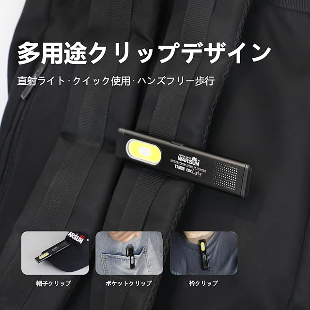 【WARSUN T7PRO】ポケットに無感スリム · 小型軽量で毎日携帯 · USB-C充電式EDC懐中電灯 · マグネット&クリップ付き · 停電時や日常の備えに