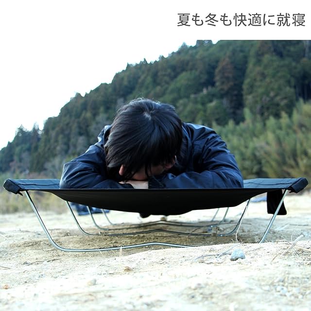 キャンプベッドを使用すると地面から浮いた状態で快適に就寝することが可能。 夏は風通し良く涼しく眠ることができ、冬は地面からの冷気を直接受けることがないので底冷えを防止します。 また地面に凹凸があっても影響を受けることが少なく、キャンプでの就寝のストレスを緩和します。