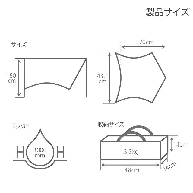 材質:生地/75D ポリエステル PUコーティング、メインポール/6061アルマイトポール 直径19mm、サイドポール/グラスファイバー 直径7.9mm