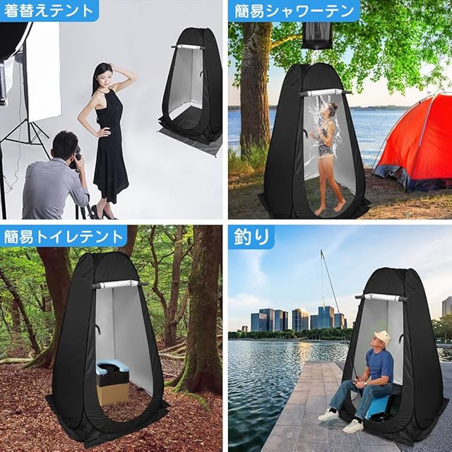 【幅広い利用シーン】持ち運びが簡単で、公園・海水浴・キャンプ・ピクニック・ビーチ・プールなどなシーンで活躍しています。更衣室のない場所でも人目を気にせず着替えや簡易シャワーができます。登山や釣りする時の雨&日避けテントにもなります。また高速道路を長時間運転や渋滞する場合、もしくは災害時にトイレ用テントや避難所テントとして活用できます。