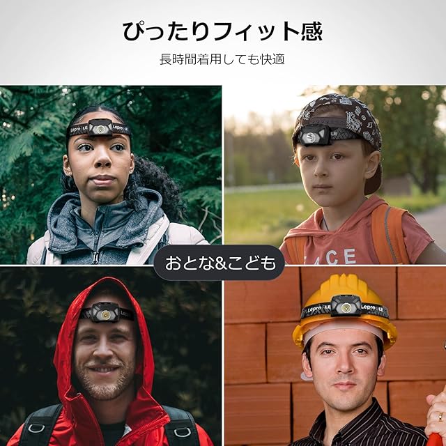 【超軽量・快適なフィット感】わずか約55gの超軽量設計で、大人から子供まで快適にフィット。取り外し可能で洗える弾力性のあるヘッドバンドを採用し、ヘルメットにも装着可能。夜釣りなど長時間の使用でも首に負担をかけず、快適にお使いいただけます。