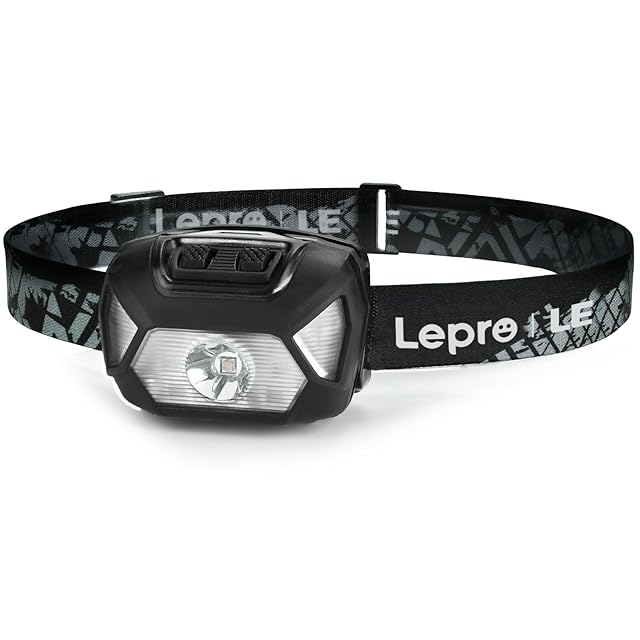Lepro ヘッドライト 電池式 LED ヘッドランプ 高輝度 ledヘッドライト 6種点灯モード 単4形電池対応【赤&白ライト/スポット・ワイドLED搭載/SOS点滅/実用点灯22時間/IPX4防水/角度調整可/CE ROHS認証済み】 釣り 登山 キャンプ アウトドア 災害 停電用 散歩 作業 小型 夜釣りに最適 ヘッド ライト(ブラック)