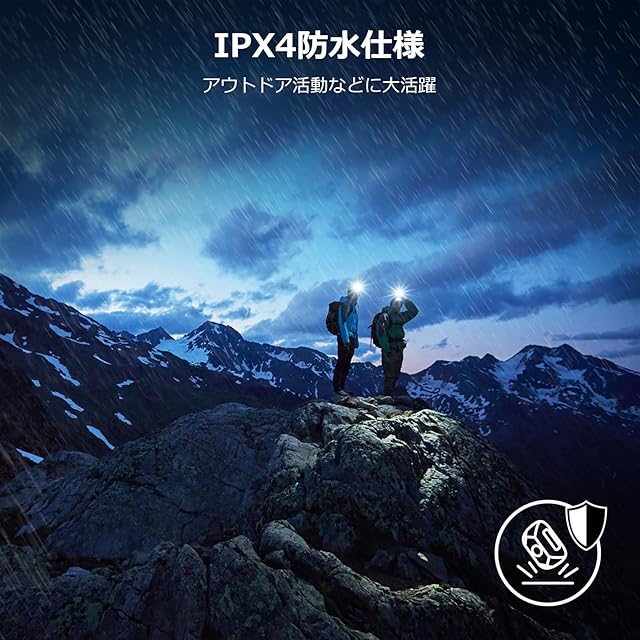 【IPX4防水・高耐久仕様】IPX4防滴仕様であらゆる方向の水しぶきに耐え、雨天時でも安心。耐衝撃性にも優れ、過酷なアウトドア環境でも安心して使用可能。登山、釣り、キャンプ、ハイキング、自動車整備など、あらゆるシーンに対応するタフなヘッドライトです。