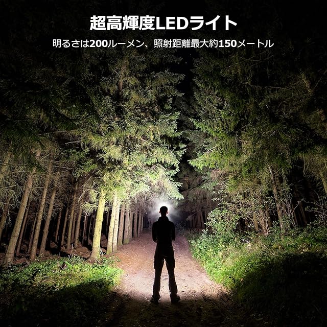 【高輝度LEDライト・アウトドアで大活躍】最大200ルーメンの明るさで、照射距離は約150メートル。暗闇でも広範囲をしっかり照らし、視認性が向上します。登山や釣り、キャンプなどのアウトドア活動はもちろん、夜間作業や非常時の備えとしても活躍します。