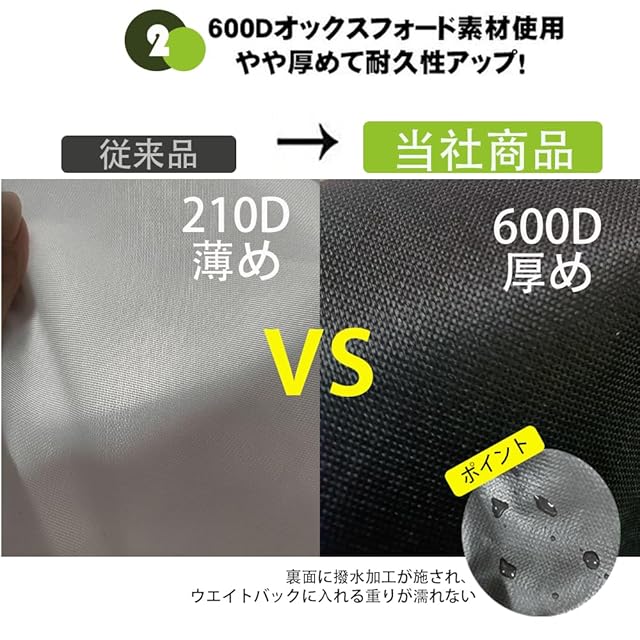 【高品質材質】オックスフォード布。高強度の600Dオックスフォード布で作られ、耐水性、耐久性、耐裂性があります。