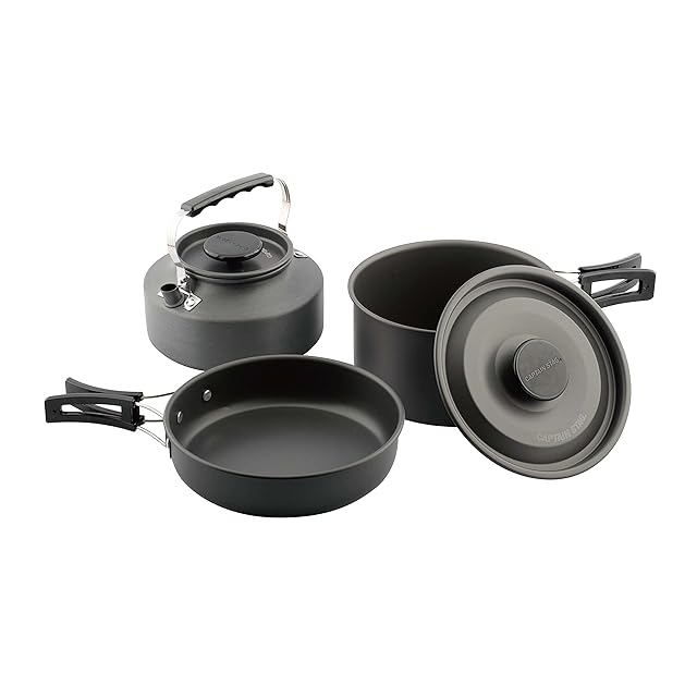 キャプテンスタッグ(CAPTAIN STAG) ケトル フライパン 鍋 クッカー Easy アルミクッカーセット 硬質アルマイト加工 収納ケース付 UH-4121