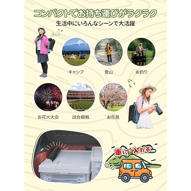 【多様なアウトドアシーンで大活躍】収納サイズ:10×10×31cm;展開サイズ:28×28×23cm(低重心で安定したキャンプチェア);キャンプ、釣り、登山に最適なのはもちろん、スポーツ観戦、花見、バーベキュー、家庭菜園など、さまざまなシーンで重宝する軽量アウトドアチェアです。▼ご購入特典:専用収納バッグ付属・1年間返品