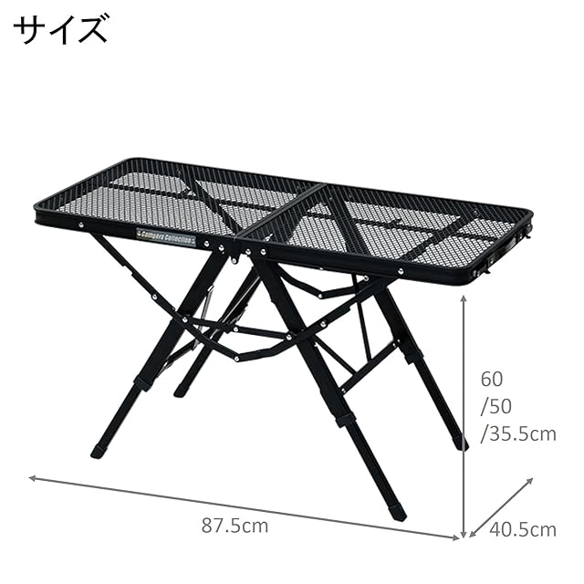 キャンパーズコレクション(Campers Collection) [ 山善] タフライトアクションテーブル ブラック TAT-8640(MBK) 本体サイズ:幅87.5×奥行40.5×高さ35.5/50/60cm