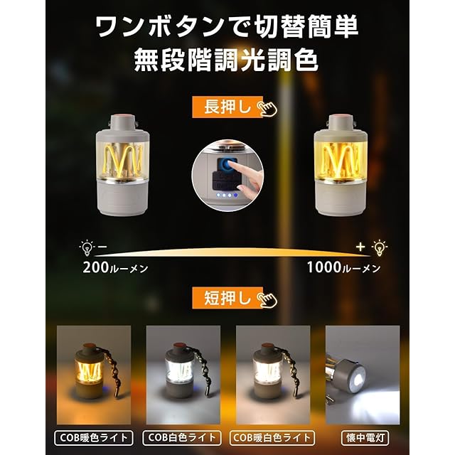 【2025最先端COB光技術・記憶機能】LED ランタン キャンプランタン 1500ルーメン高輝度 無段階調光調色 Type-C充電 3500mAh大容量 防水 防塵 IP55 キャンプライト 懐中電灯兼用 軽量 小型 ストラップ付き 吊り下げ/卓上置き 持ち運び便利 携帯用ランタン ソロキャンプ アウトドアライト キャンプ 登山 夜釣り 停電 防災 緊急用 (ベージュ)