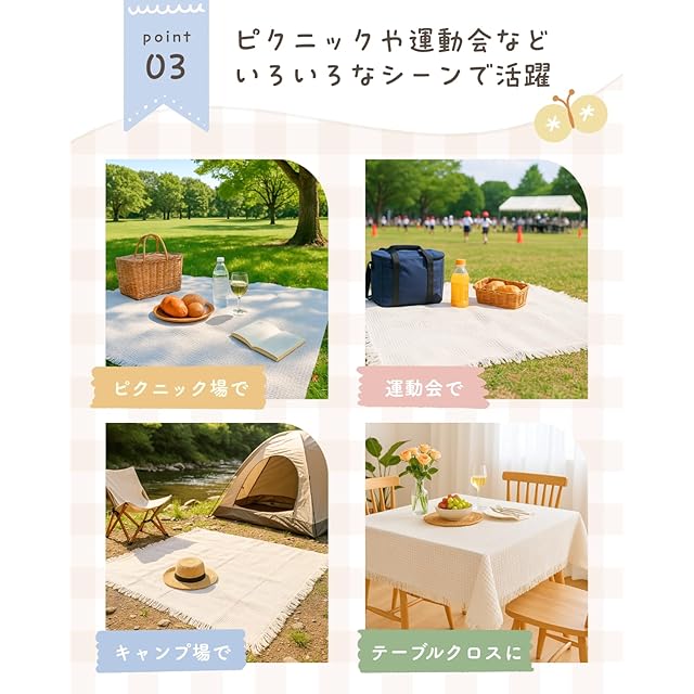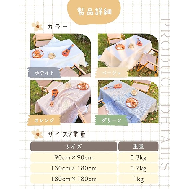 【写真映えするレジャーシート】サイズは2種類からお選びいただけ、いずれも1~4人用です。使いやすく、ピクニックやアウトドアで大活躍します。