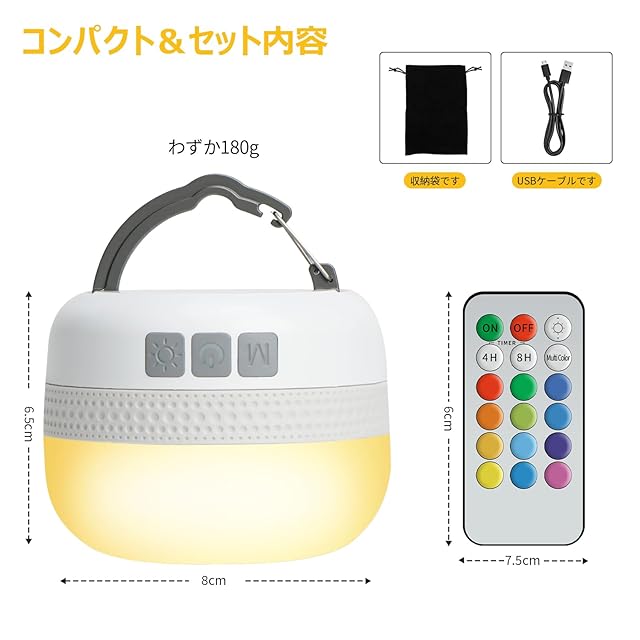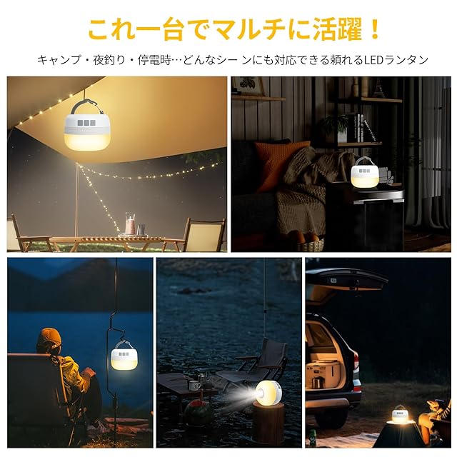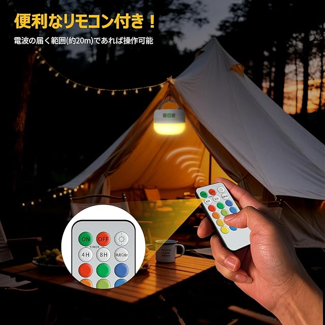 【13色リモコン操作 & 無段階調光】 リモコンでワンタッチ色切替!昼白色・電球色・自然光に加え、オレンジ/赤/緑/青/紫など全13色から選択可能。長押しで明るさを無段階調節でき、キャンプのムード照明から停電時の非常灯まで幅広く対応。SOSモードも内蔵し、防災時にも安心です。