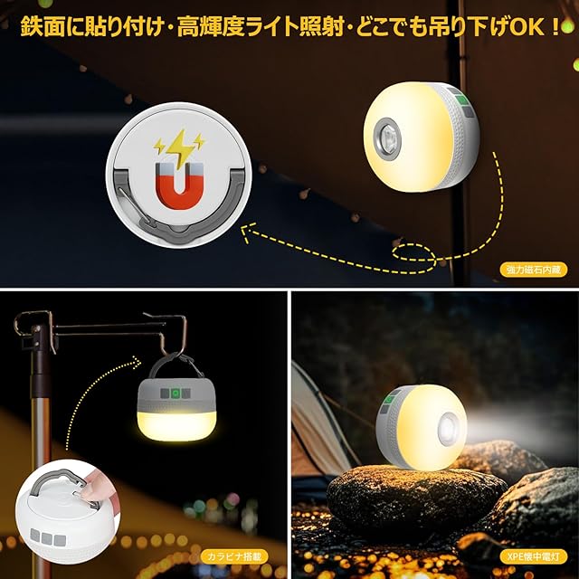 【多シーン対応 & 非常用最適化】 吊り下げればテント内照明に、平置きで卓上灯に、マグネットで車内灯に。ソーラー充電可能な設計で、災害時の停電対策・避難生活をサポート。防災グッズとしての保管推奨。