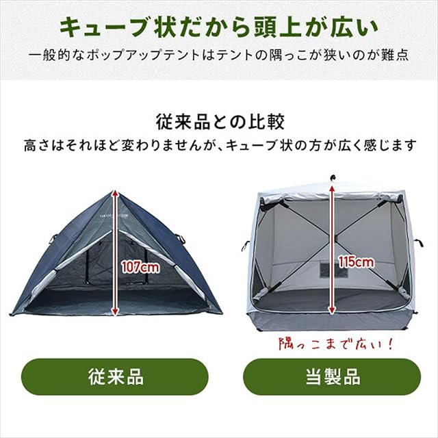 [キャンパーズコレクション 山善] ポップアップテント 傘みたいに広げて畳める パッとサッとサンシェード キューブ フルクローズ メッシュ 簡単設置 ワンタッチテント キャンプ&ハイキング ホワイト PATC-150(WH)