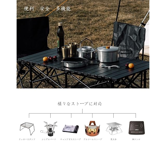 【厳選した高品質なステンレス】アルミ合金と比べてコストは高いですが、丈夫で耐用性が高いステンレスを使用しています。旅行中何かにぶつけても、ステンレスはアルミ合金よりも、衝撃で変形しにくくなっています。またクッカーは熱が均一に伝わり、アウトドア用カセットコンロや電磁調理器など様々なコンロに対応しています。