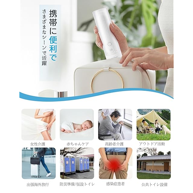 旅行先でも普段使いでも、いつでも清潔に: 出張や旅行、レジャーなどの外出時はもちろん、日常のさまざまなシーンでご利用いただけます。赤ちゃんのおむつ替えや介護時、災害時など、いざというときにも便利です。
