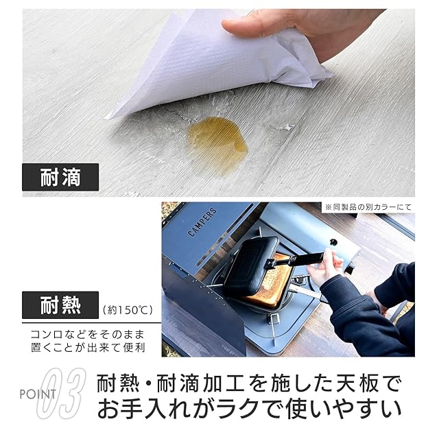 [材質]天板 : 合成樹脂化粧繊維板(メラミン樹脂) 脚部 : アルミニウム