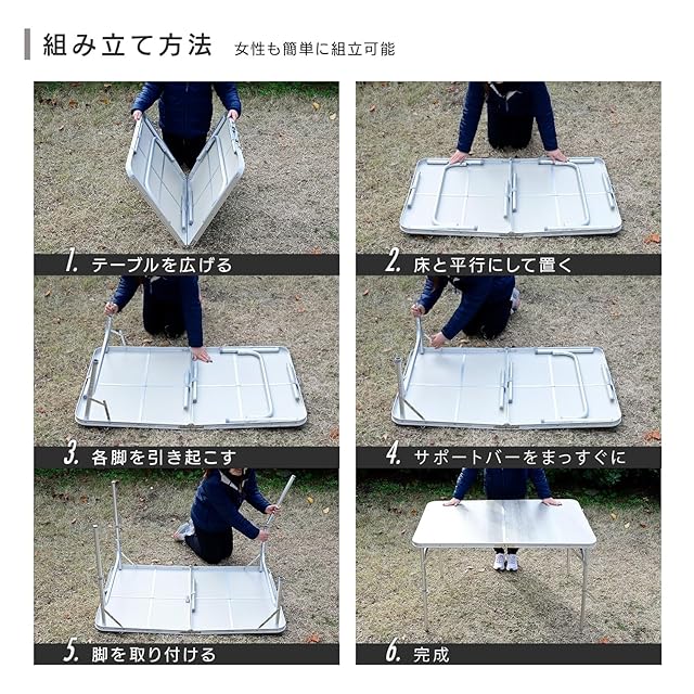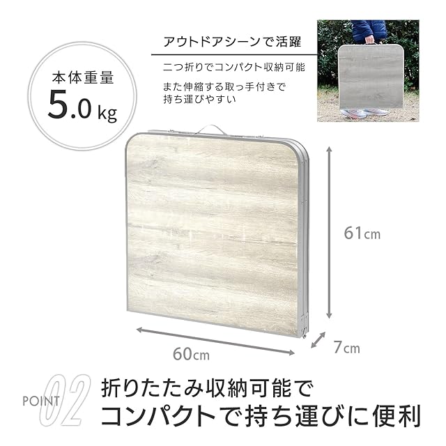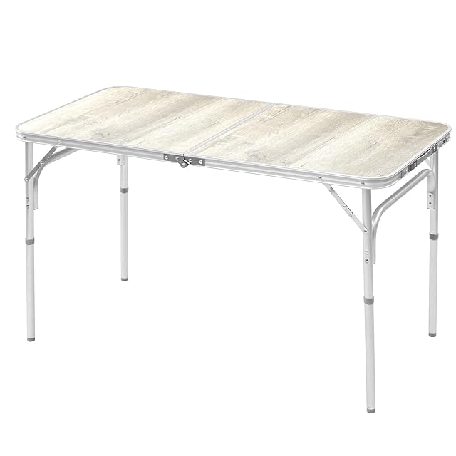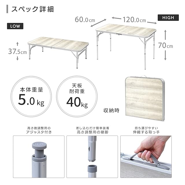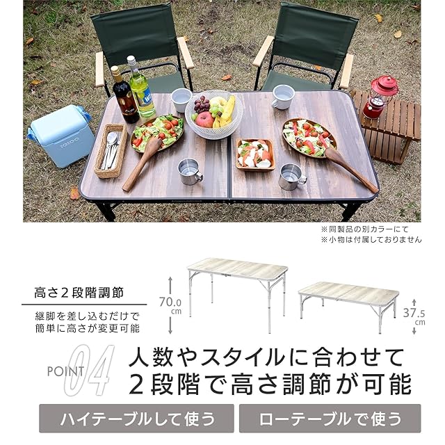 [キャンパーズコレクション 山善] アウトドア テーブル キャンプ アウトドア 熱・水に強い 折りたたみ式 軽量 高さ調整(2段階) 幅120×奥行60×高さ37.5/70cm ホワイト木目 YAT-1260(BWH)