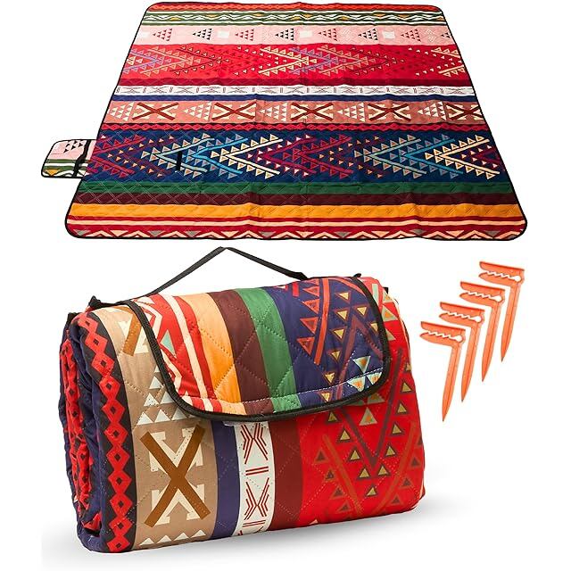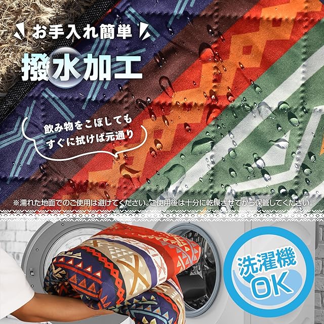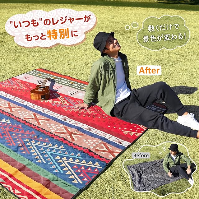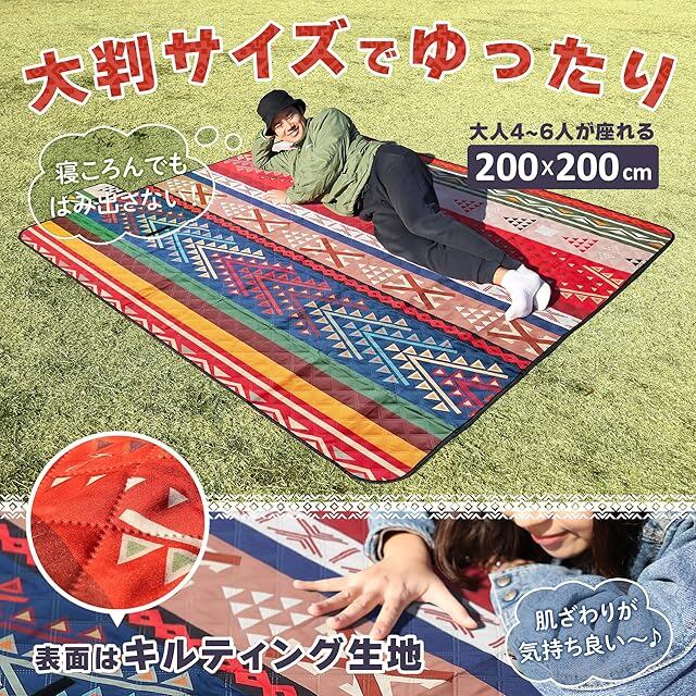 【敷くだけ、ぐんと素敵に】 レジャーシート 厚手 ふかふか 3層構造 民族柄 200×200 cm 大判 キルティング 生地 撥水 洗える | 軽量 コンパクト インナーシート アウトドア キャンプ ピクニック [新登場2025年2月]