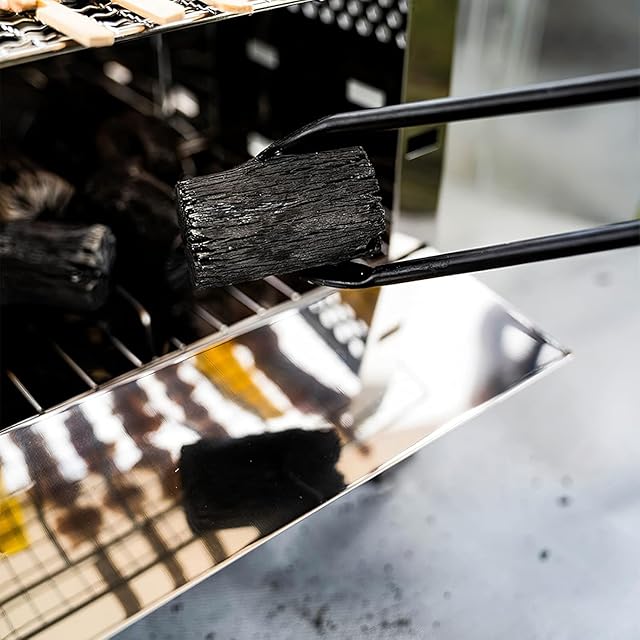 特徴:①中空のステンレス丸棒と天然木を使用。②送風用の火吹き棒との組み合わせ。③先端は歯状になっています、小枝から大きな薪まで簡単につかむことができる。