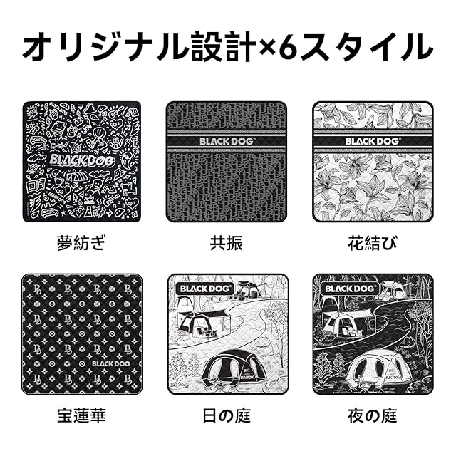 【6種のオリジナルデザイン】BLACKDOGデザイナー監修の6パターン。クールで自由なスタイルから、高級ブランドのようなミニマルで上品なスタイルまで、好みに合わせて選べます。アウトドアシーンでも個性を発揮!