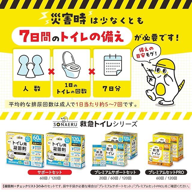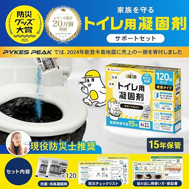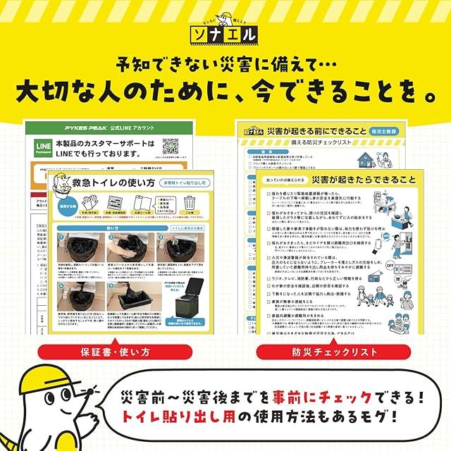 【2025年防災グッズ大賞受賞】PYKES PEAK 防災用 簡易トイレ 凝固剤 120回分 15年保存 防災チェックリスト付き 非常用 災害用 携帯用 ポータブルトイレ 防災グッズ トイレ モグラ隊長 救急トイレ ソナエル