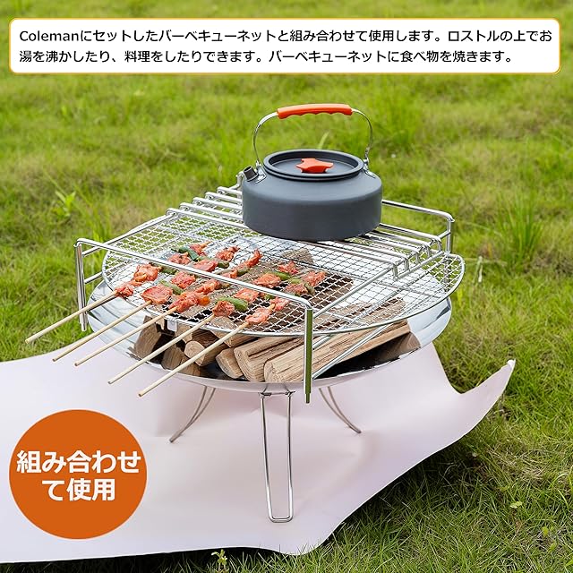五徳 Coleman(コールマン)焚火台専用 ファイヤーディスク 3段パイプフレーム 焚き火 3段火加減調整 携帯便利 コンパクト アウトドア キャンプ ステンレス製