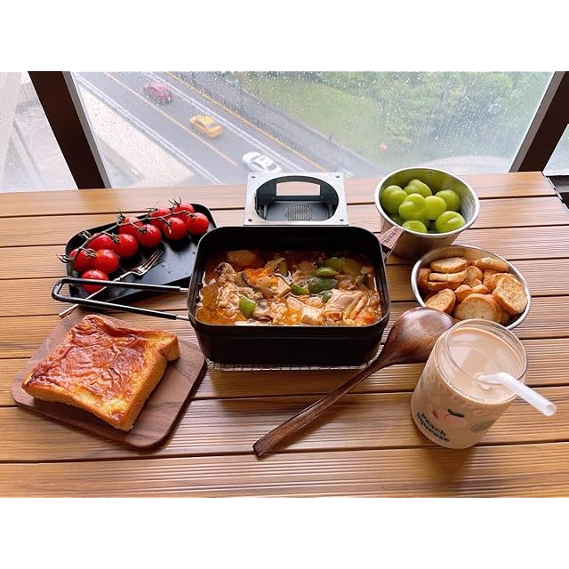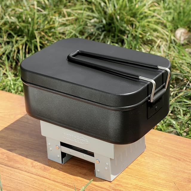 MiliCamp 黒ラージメスティン テフロン フッ素加工キャンプ飯盒 ファミリーキャンプ炊飯 焦げ付きにくい はんごう アウトドア 調理器具 目盛り付 シーズニング不要