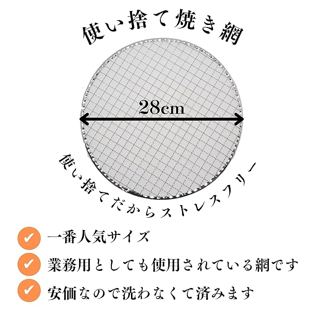【TFS】 使い捨て焼き網 丸網 28cm (10枚) ストレスフリー 七輪用 焼肉用 キャンプ