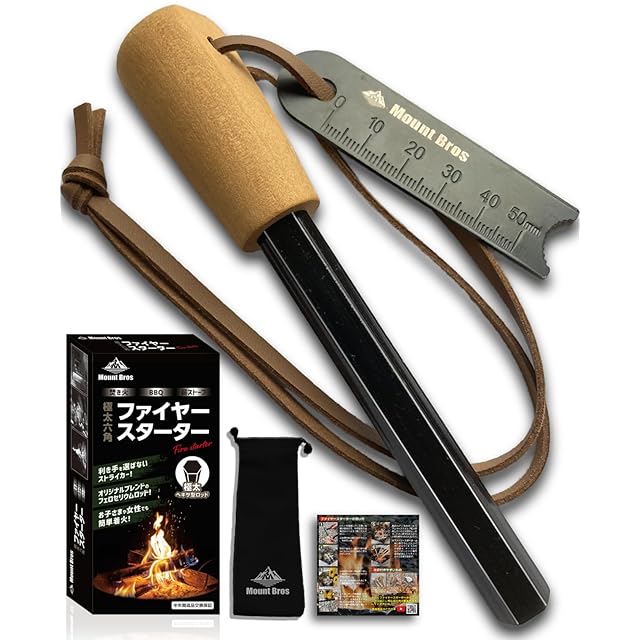 ファイヤースターター 【キャンプのプロ推薦!】 MountBros フェロセリウム 六角 極太 長い メタルマッチ 取説 収納袋セット 半年返品