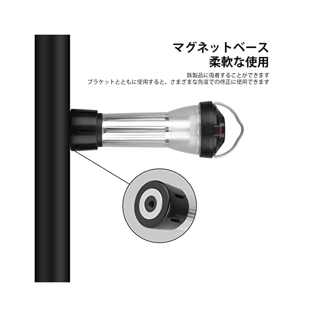 【コンパクト・組み合わせが可能 】:①上部ステンレスフック:ledランタンや小型蛍光灯としてで使用することも、棚やバックパックに掛けることもできます。② 強力磁気ベース:マグネットベースは、あらゆる鉄の物体に柔軟に取り付けられ、様々な角度で固定することができます。 ③ミニ三脚+シェード:付属のアクセサリーを使用することで、屋外キャンプや釣りなどのシーンで使用できるアウトドアスタンドに変身し、イルミネーションを施しながら強い雰囲気を醸し出すことができます。