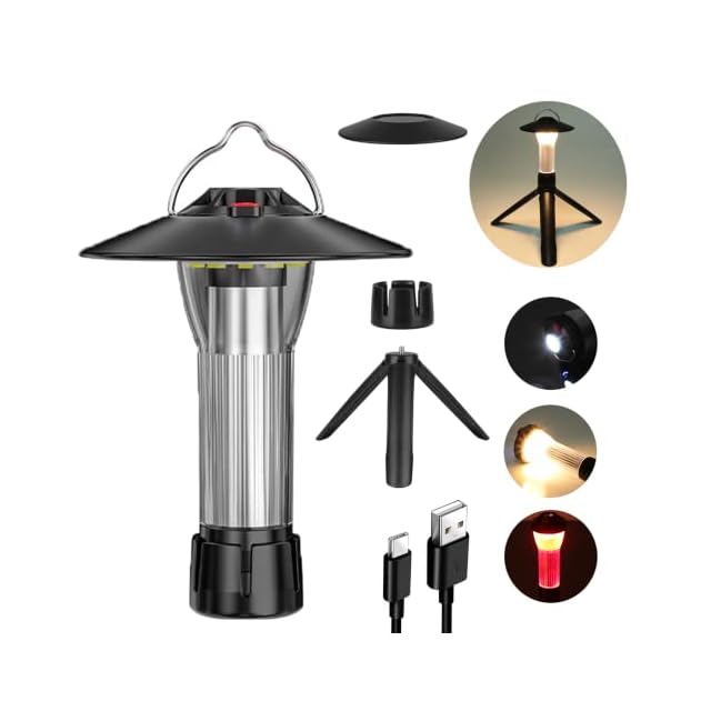 【 製品仕様】 :ledランタン 色:ブラック、材質:ABS+PC、IP45防水グレード、サイズ:Φ30*115mm、重量92g、電池容量:2600mAh 明るさ:14lm~200lm、色温度:6500k&3500k、充電:USB Type-C 点灯時間:7(ハイモード)~120H(最弱)、充電方法:USB Type-C 、付属品:ライト本体×1、ミニトライポッド×1、 シェードx1。