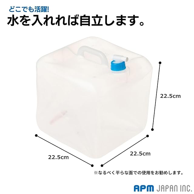 【大容量10L!でも折りたたんでコンパクトに収納できます】折りたたんだ状態では幅20cm×高さ3cm(コック付き時10cm)で、収納・持ち運びやすい。