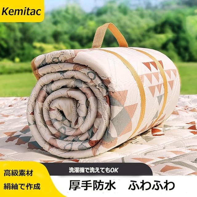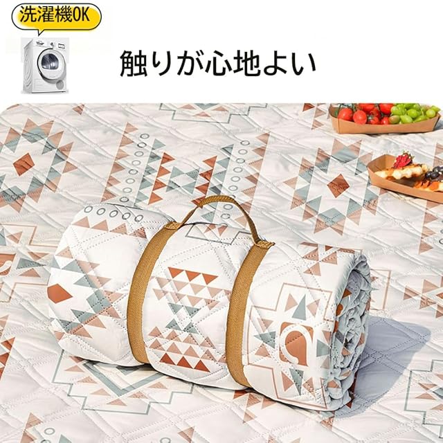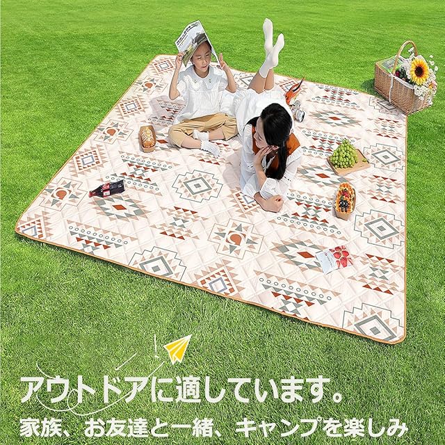 【防水機能】このレジャーシートは防水素材で作られており、地面からの湿気や水分をしっかりと遮断します。雨上がりの地面でも安心して使えるので、ピクニックやキャンプなどのアウトドア活動に最適です。