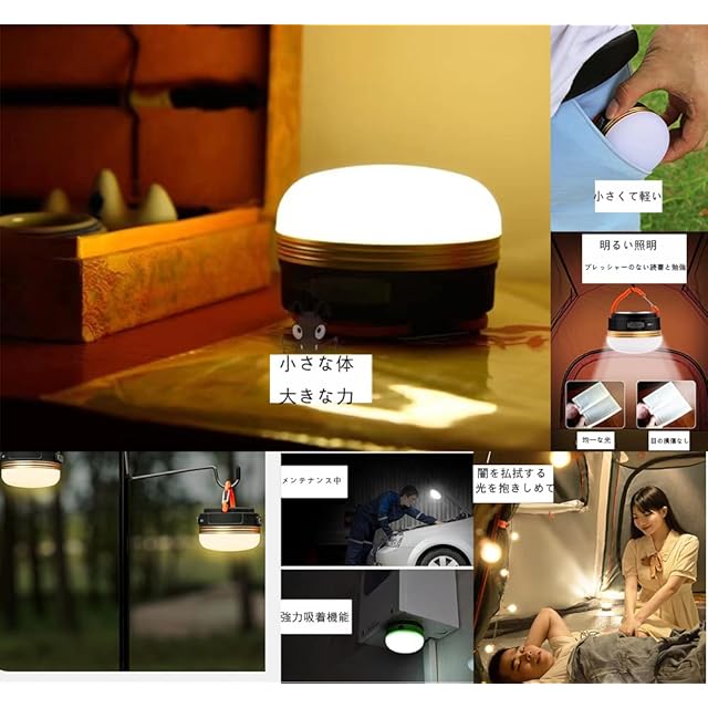 防水防滴機能を備え、いかなる角度からの水しぶきも耐えられ、小雨、雪などの天気でも影響なく使えます。ご注意:(完全防水ではないので、水面下に投入しないでください)キャンプライト、テーブルライトやナイトライトなどお好みに合わせて雰囲気作りの照明としても最適です。