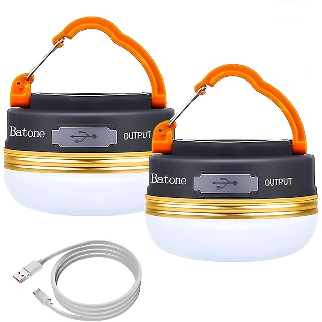 Batoneキャンプ ランタン ledランタン 充電式 3つ調光モード 超軽量 携帯便利 防水キャンプ用品 キャンプ ライト ランタン 1800mAh フック モード切替(2個セット)
