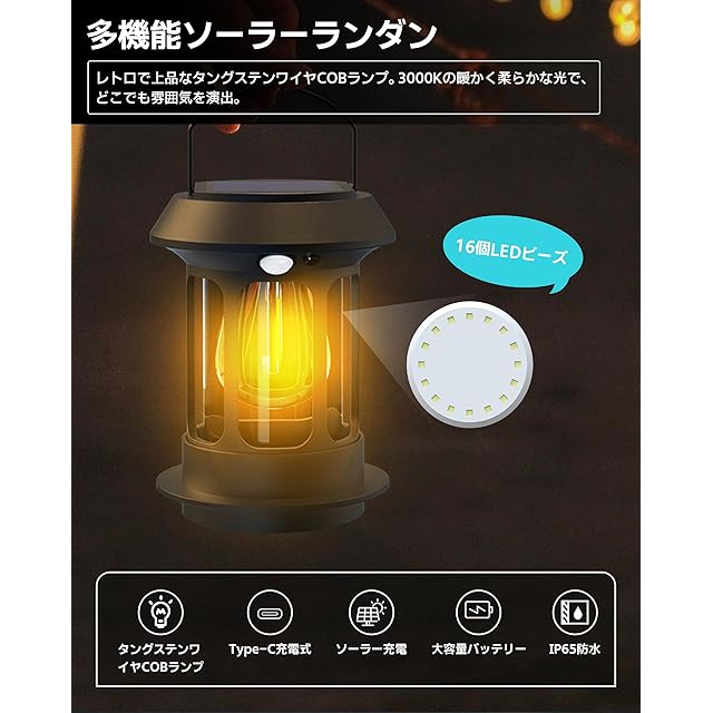 LED ランタン ソーラー 充電式 キャンプ 【人感センサー & 4つ点灯モード】コードレス 作業灯 超高輝度 災害 ライト スームルーム ランタン 防水 アウトドア 車中泊 登山 夜釣り 防災 停電 緊急 非常用 電球色 1セット