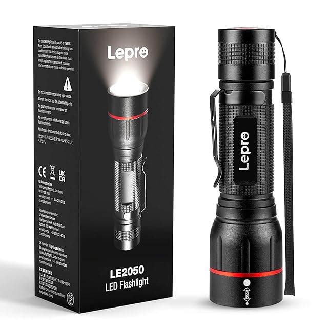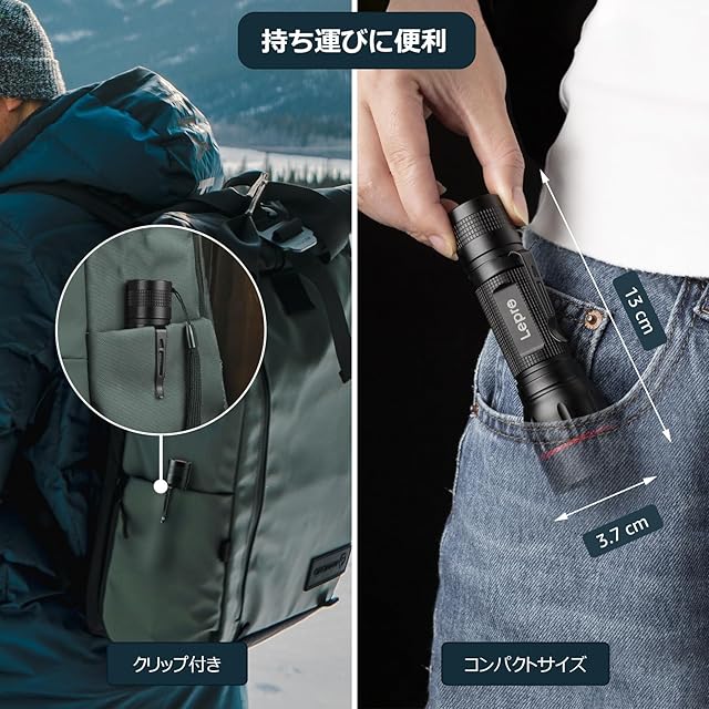 Lepro LED懐中電灯 フラッシュライト ハンディライト 強力 軍用 【LE2050/高輝度/18650と単四電池対応/ズーム式/5つ点灯モード/防滴/クリップ付き】電池式 防災 停電対策 緊急用 新型 軽量 キャンプ 登山 夜釣り (1個パック) [PR120028-JP]
