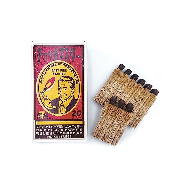 PEAKS&TREES マッチ型 着火剤 キャンプ バーベキュー ファイヤースターター 20個入 FIRESTARTER HEAD COMPOSITION 火起こし 薪ストーブ 焚き火 燃料 天然素材 アウトドア 長持ち 長時間燃焼 ライター不要 防災用品 (1箱)