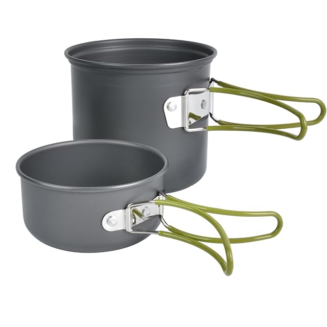 SOHAPI アルミクッカーセット キャンプ用品 鍋 アウトドアケトル クッカー くっかーセット アウトドア 調理器具 フライパン キャンピング鍋 収納袋付き 1–2人に適応 折畳み式 軽量 コンパクト(2点セット)