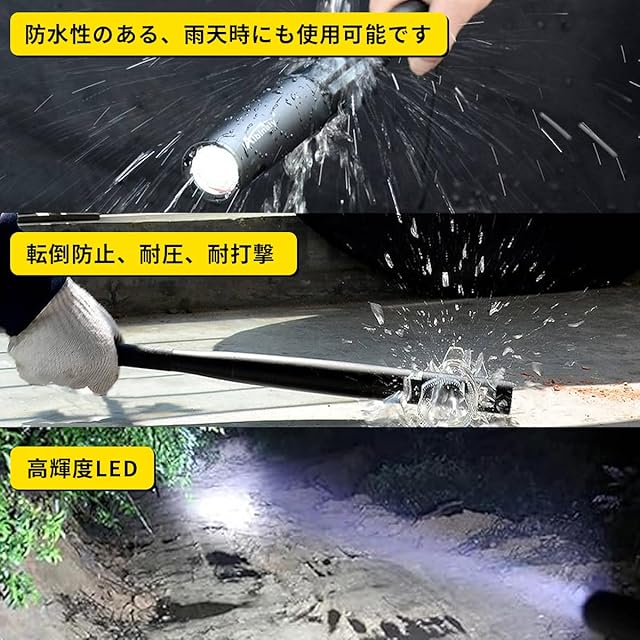 【高輝度 LED】LED ライトを採用し、キャンプ中の夜の森や薄暗い夜道の照明に使用でき、照明距離は数百メートルに達します。