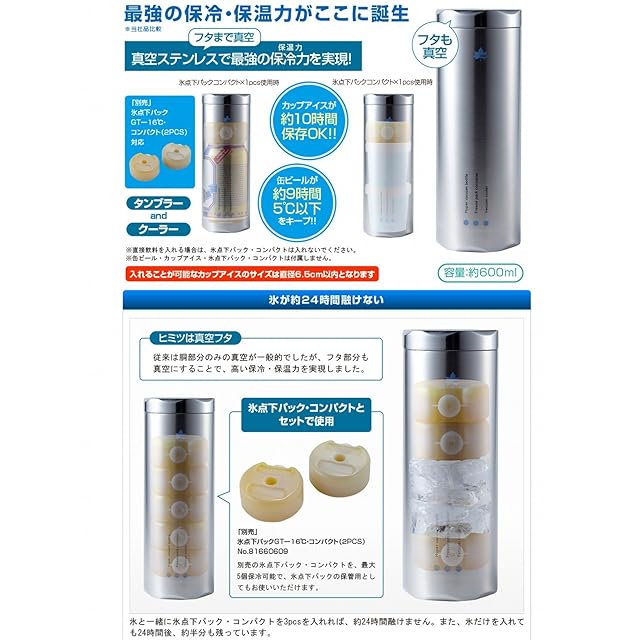 保冷能力:カップアイスが約10時間保存できます。(氷点下パックコンパクト×1pcs併用)